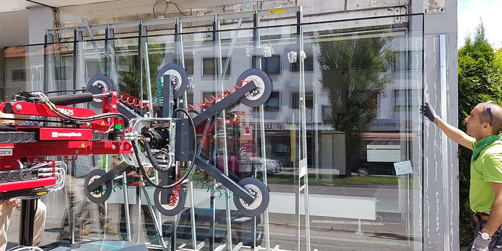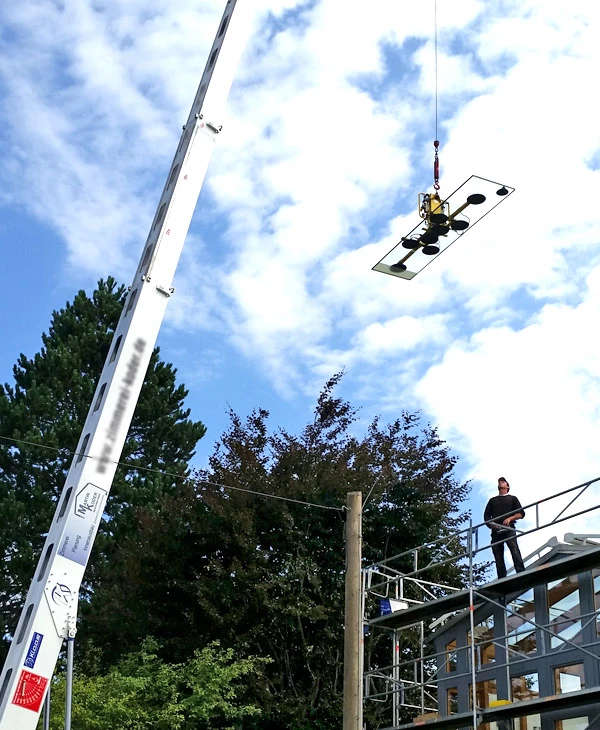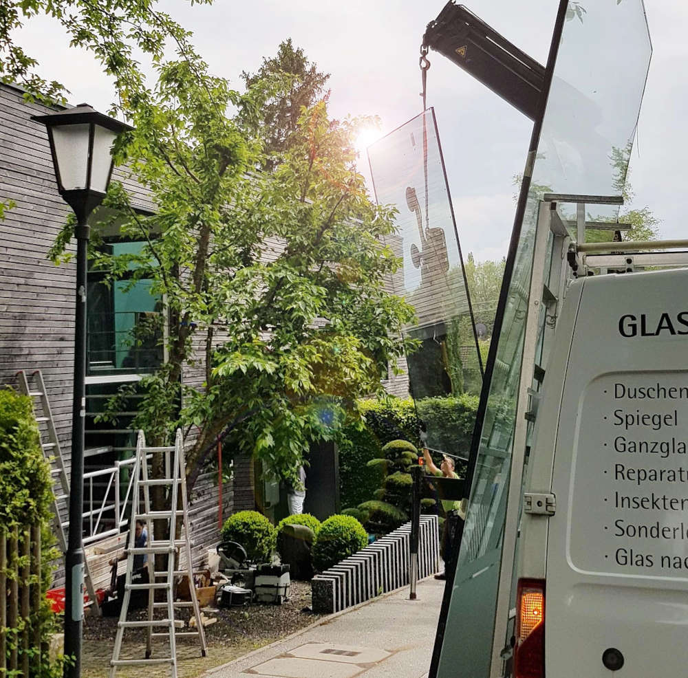 Für Glas im Außenbereich zu verbauen erwarten uns durchaus mal größere Herausforderungen in Sachen Transport und Einbau. Hier einige Bilder von unseren Baustellen.